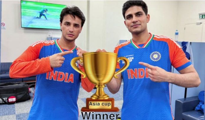 بھارتی کھلاڑی ابھیشیک شرما اور شبھمن گل نے سوشل میڈیا پر ایک پوسٹ شیئر کی جس میں دونوں ایک ٹرافی کے ساتھ کھڑے دکھائی دیتے ہیں حالانکہ بھارتی ٹیم کو ان کی ہٹ دھرمی کے باعث ٹورنامنٹ کی اصل ٹرافی دی ہی نہیں گئی تھی۔