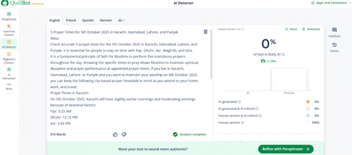 Prayer makes up the foundation of a Muslim’s daily life, and performing it accurately at the time of prayer enhances a person’s spiritual discipline. For the date 5th October 2025, residents of Karachi, Islamabad, Lahore, and the rest of the cities in Punjab should follow this guide to remain punctual during all five of the daily prayers. When you are aware of what the local time is, it facilitates worship even when you have a busy schedule.