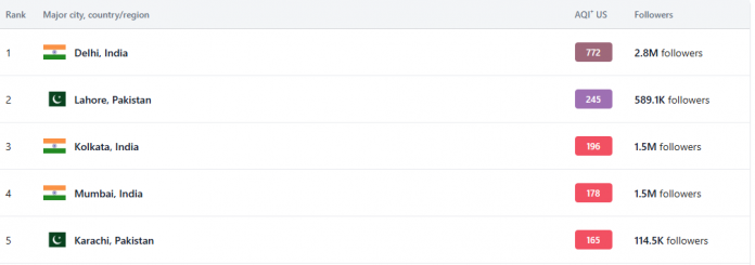 بھارتی دارالحکومت نئی دہلی دنیا کے آلودہ ترین شہروں کی فہرست میں پہلے نمبر پر آگیا۔